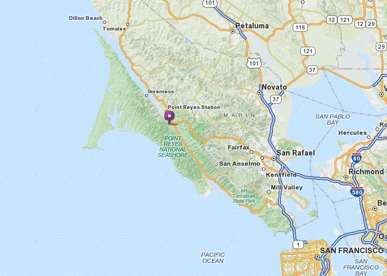 マリン北西の海岸沿い一帯はポイント レイズ国定海浜公園(Point Reyes National Seashore)です。